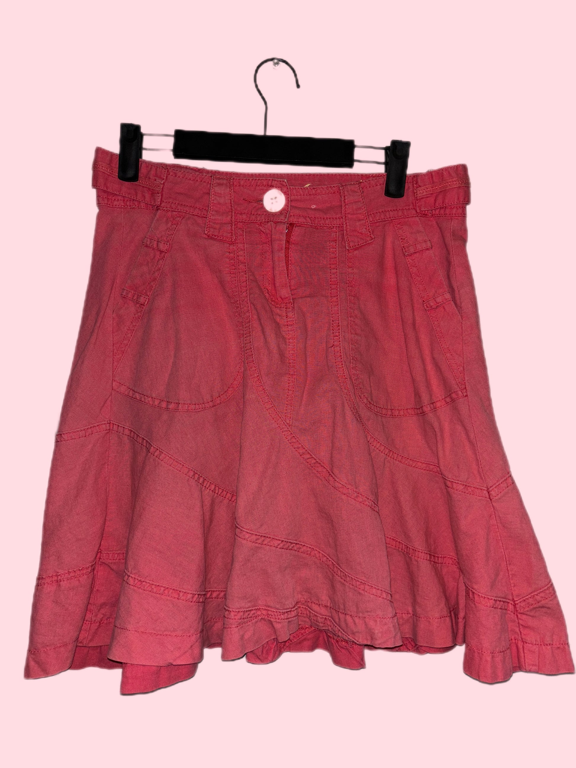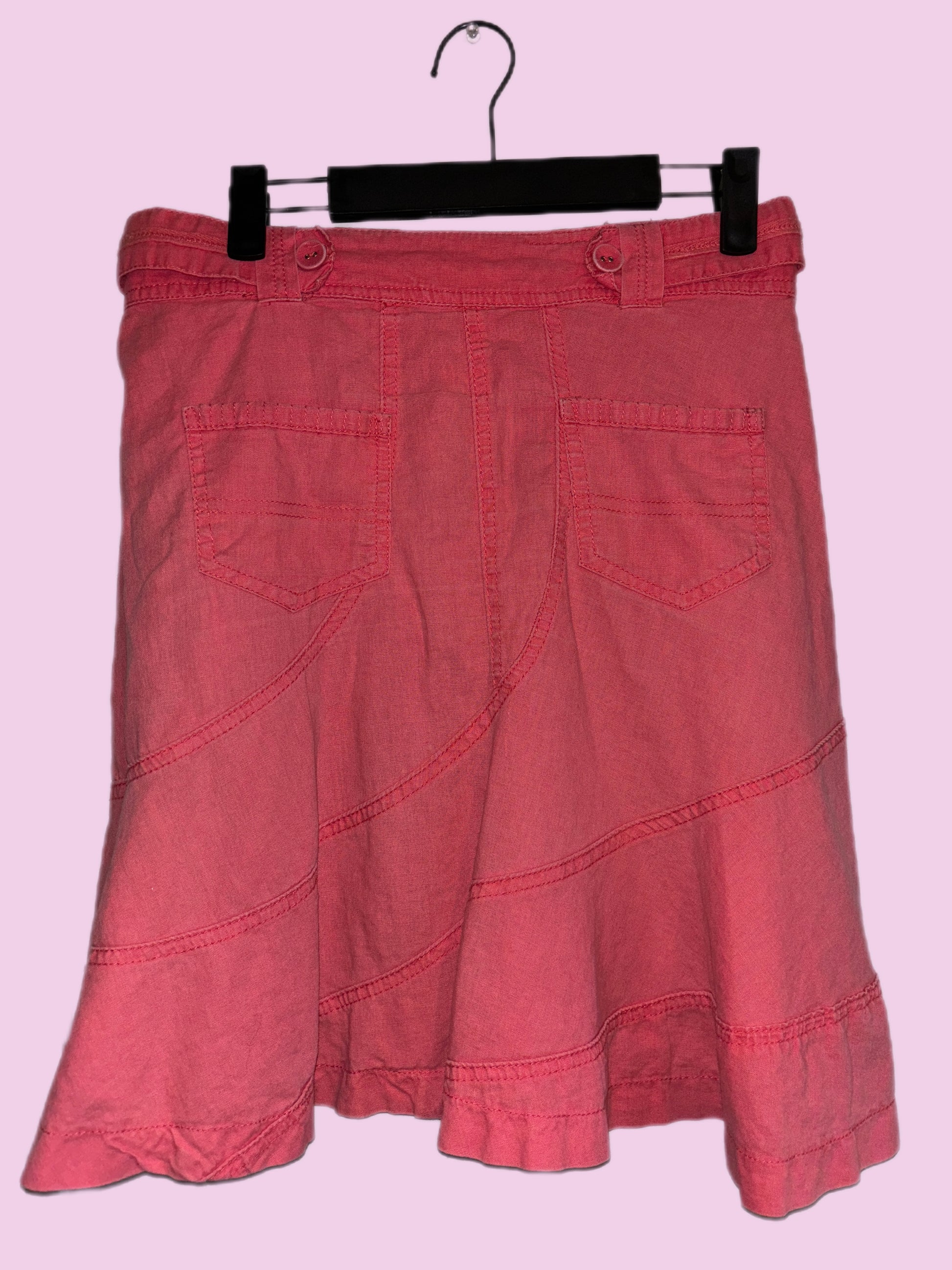 This coral pink midi skirt is straight off of a Barbie. She's a light linen blend with the cutest stitching details. She’s light, flowy, and made to twirl. Girly in the best way—and besties with both kitten heels and white sneakers.
